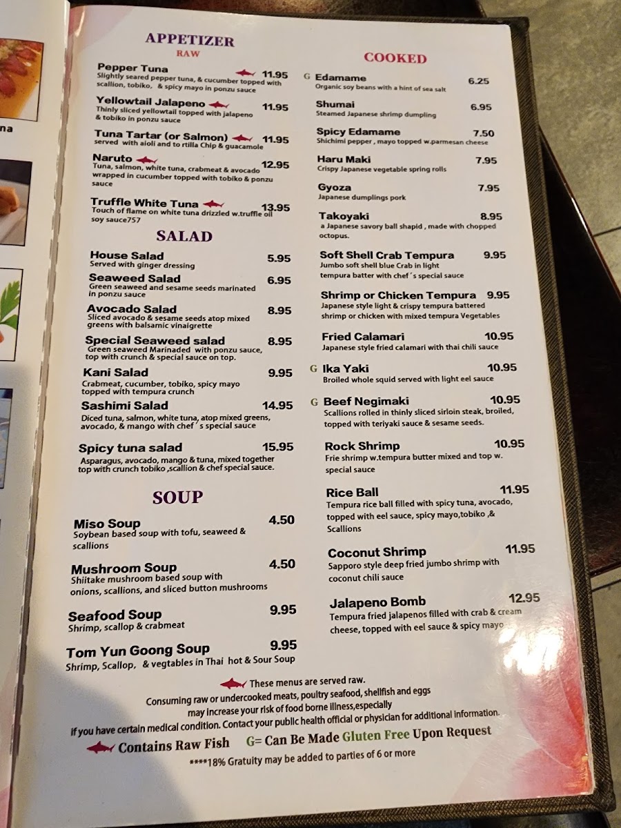 The extensive menu offers an array of tantalizing options, from mouthwatering appetizers like Agedashi Tofu and Jalapeno Bombs to hearty soup choices like Seafood Soup and Miso Soup. Each dish is crafted with fresh ingredients, ensuring that every bite bursts with flavor.